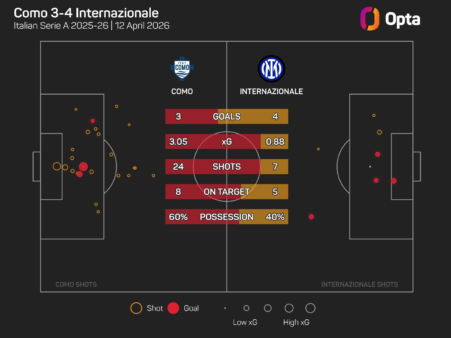 Como, who saw their seven-game unbeaten streak snapped, missed the chance to leapfrog Juventus into fourth as they continue to chase a Champions League spot.