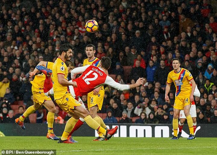 It was absolutely brilliant, Giroud using his heel to scorpion kick the ball past Wayne Hennessey in the Crystal Palace net after latching onto an Alexis Sanchez cross.