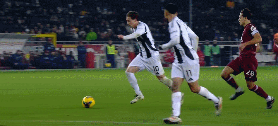 Yildiz put Juventus in front in the eighth minute with a low shot from outside the box, having received the ball from fellow youngster Nicolo Savona before driving inside.