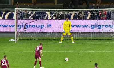 Belotti makes no mistake from 12 yards out, smashing the ball down the middle and sending Donnarumma the wrong way to his left! A vital goal for the hosts, who will be level on points with their opponents should they continue to hold out!