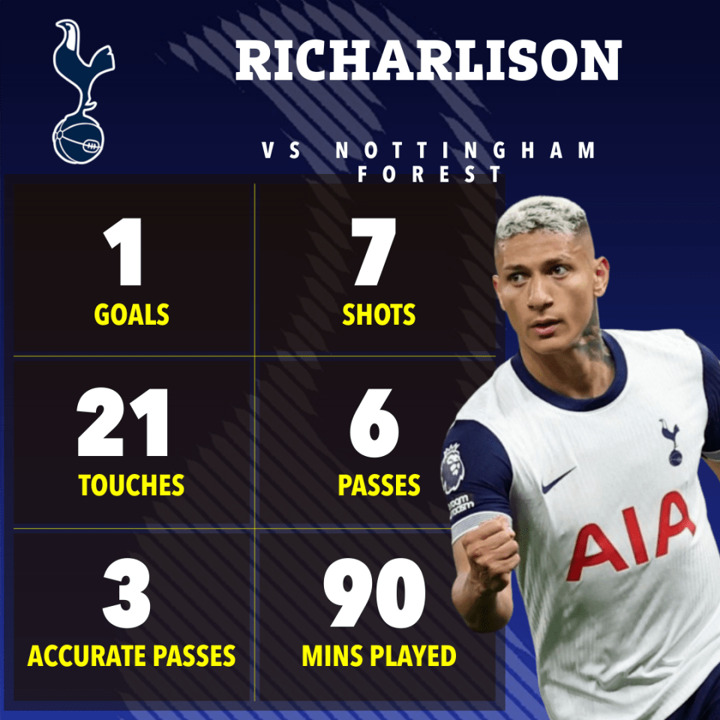 Richarlison did grab a goal back in the 87th minute, powerfully heading home Pedro Porro's cross.