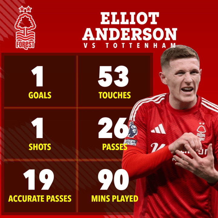 5' GOAL! Tottenham 0-1 Nottingham Forest (Elliot Anderson)