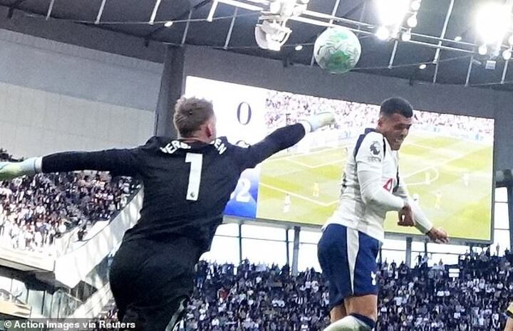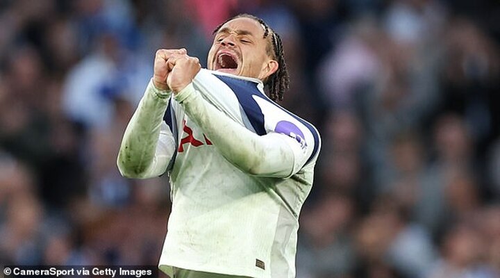 Micky van de Ven desperately tried to hook it away but could only slam it against the post. The ball bounced out, hit him on the thigh and rolled across the face of goal before it was hoofed clear.