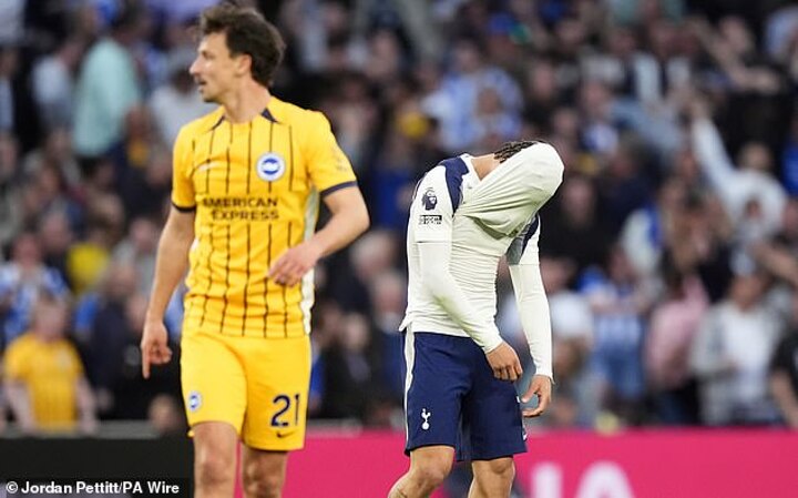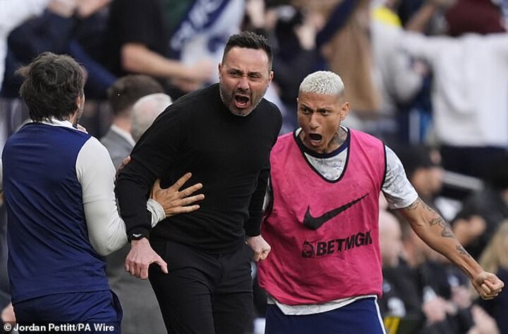 But then they plunged downwards again. Four and a half minutes into added time, substitute Georginio Rutter swept home a pull-back from Jan Paul van Hecke to make the score 2-2. When the final whistle went, many of De Zerbi’s boys in white fell to the turf, distraught.