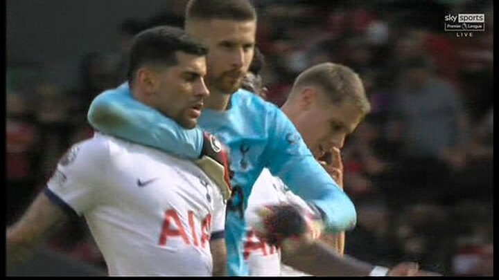Tottenham defenders Cristian Romero and Emerson Royal were involved in a heated argument during the match against Liverpool.