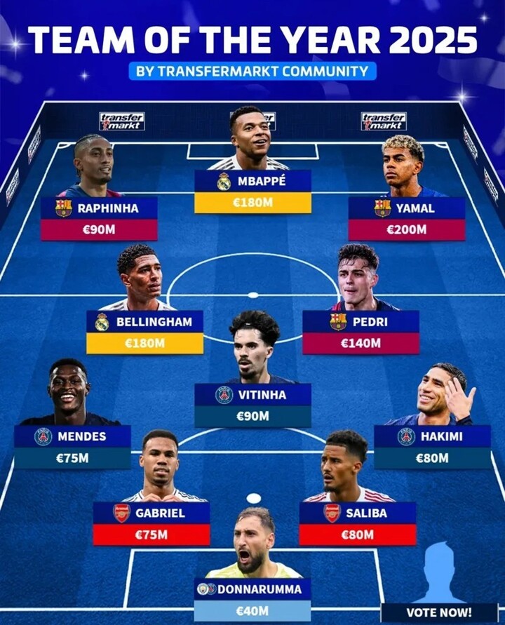 Transfermarkt's Best XI of the Year: Three players each from PSG and Barcelona