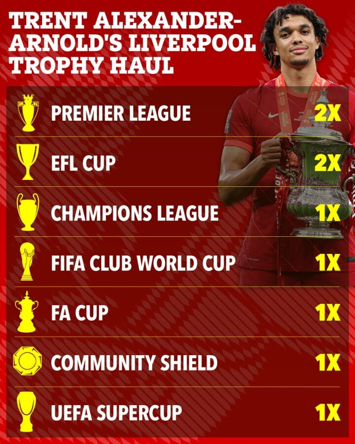 Alexander-Arnold is ending a 20-year association with the Reds after breaking through the academy and helping the club to win a host of major honours, including two Premier League titles and the Champions League.