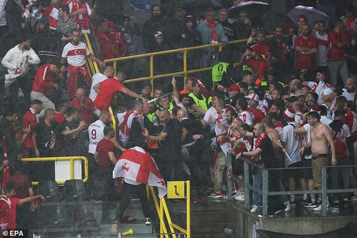 Chaotic scenes have erupted in Dortmund ahead of Turkey's Euro 2024 clash against Georgia, as violent clashes between both sets of fans arose inside the Signal Iduna Park.
