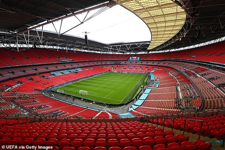 Wembley's 90,000-seater capacity was reduced to 22,500 for the tournament's group fixtures. However, that was then expanded to 45,000 for last-16 ties.