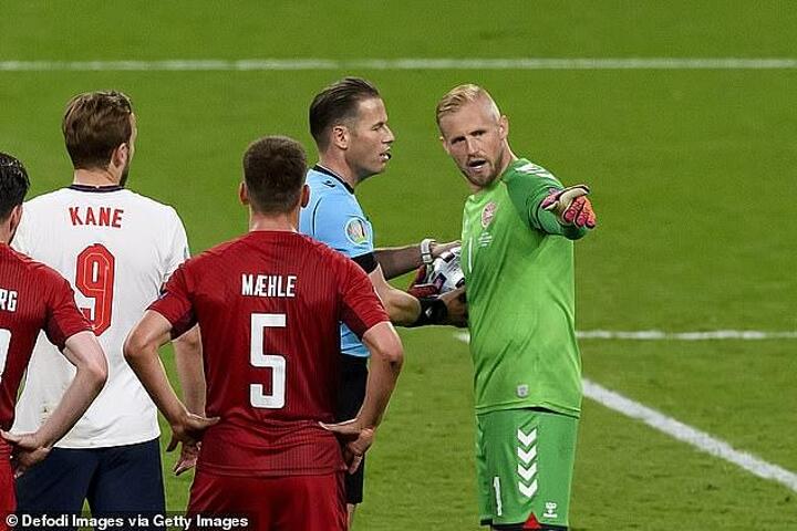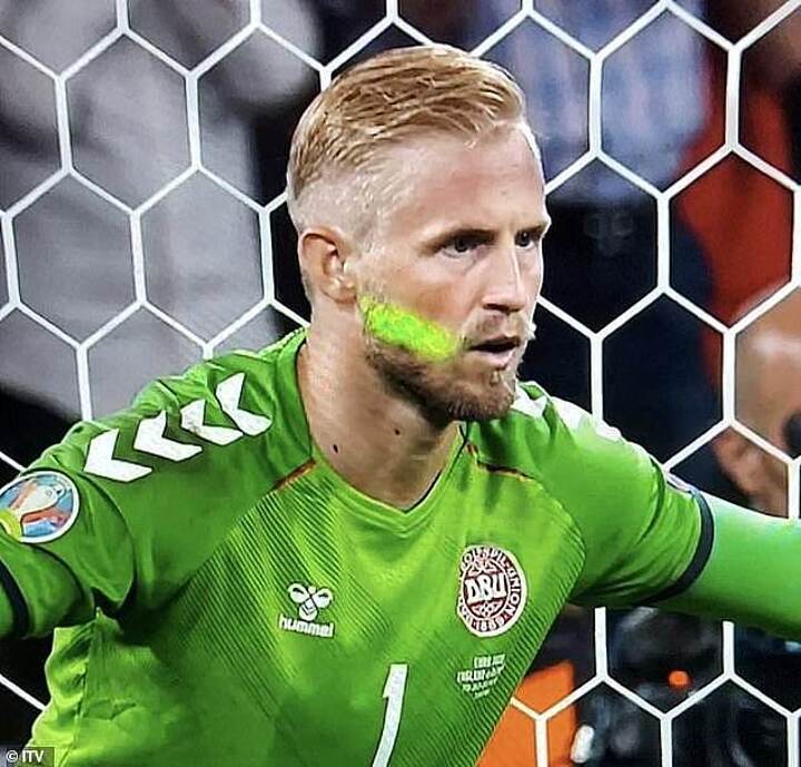 Schmeichel revealed he told the referee about the laser before the penalty: 'I did not experience it on the penalty kick because it was behind me on my right side. But I did experience it in the second half.