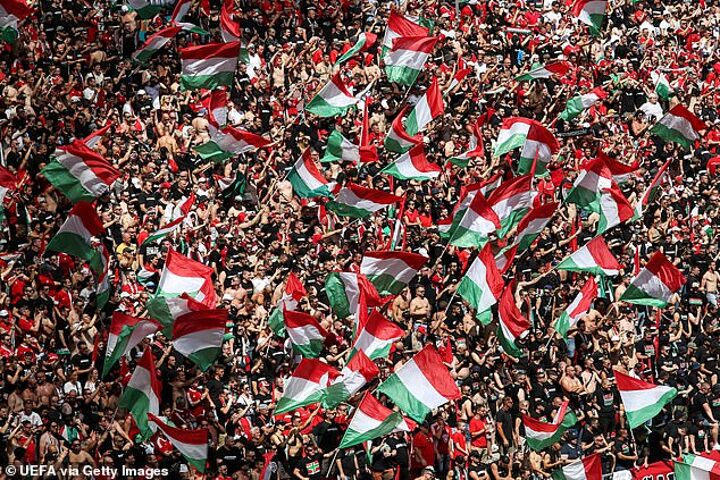Hungary fans were seen in black shirts marching against players taking the knee, while other supporters waved homophobic banners at the Puskas Arena during the early weeks of the tournament.