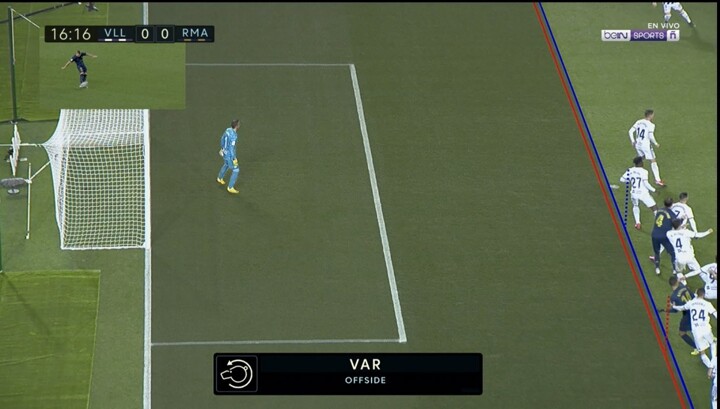 Casemiro finds the back of the net but it’s offside after VAR! Kroos floats the free-kick from his position in right midfield to the far post, where the holding midfielder beats both Fernandez and Olivas to the ball, heading it home comfortably. After a brief review, however, the referee overrules the goal, as Casemiro had drifted slightly off!