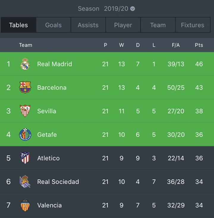 La Liga Standings