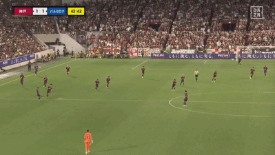 44' GOAL! Miyashiro equalizes just before half-time! Vissel Kobe 1-1 Barcelona