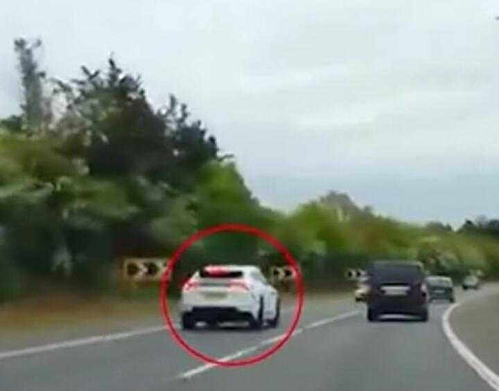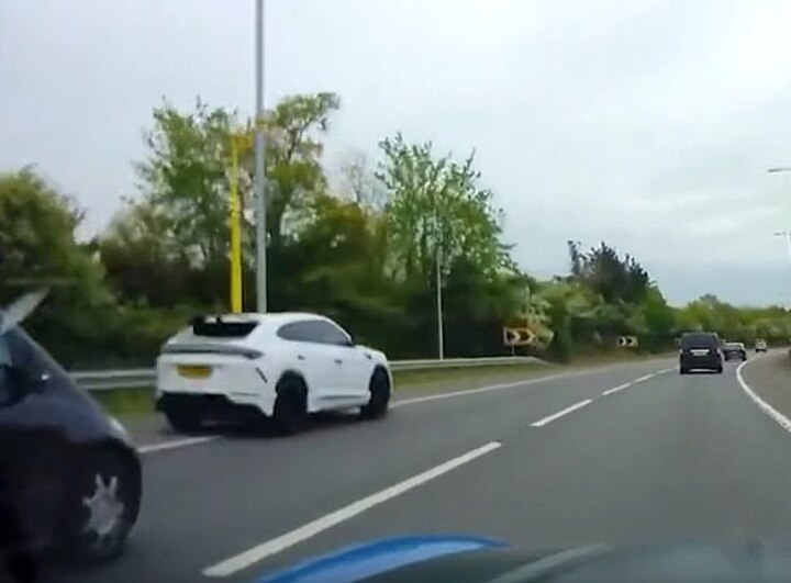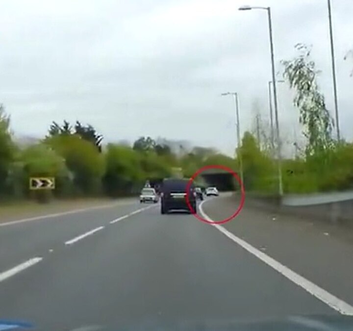 Astonishing footage recorded by a motorist on their dashcam, which was reported to police, shows the footballer thundering down the dual carriageway in the £200,000 Super SUV.