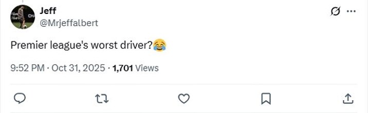 A third asked if it made him the worst driver in the English top flight, while a prominent Chelsea account called it 'not normal'.