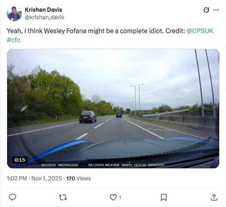 Wesley Fofana has been branded a 'complete idiot' by fans after shocking footage emerged of him speeding in his Lamborghini on the hard shoulder.