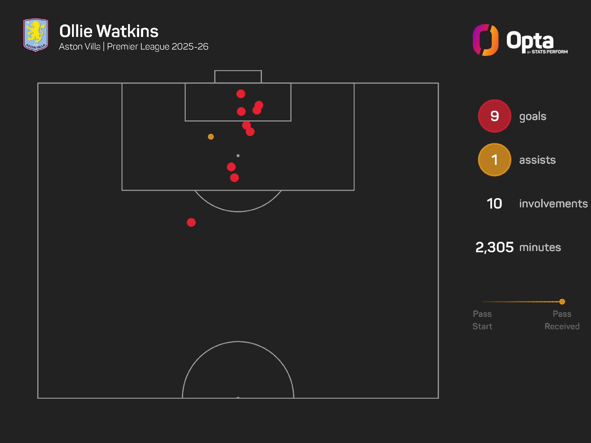 It is the highest ratio of any player to start 20+ league games for the club this season. When he hasn't started, Villa's win rate drops to 25% (2/8) in 2025-26.