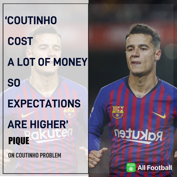Pique: Coutinho cost a lot of money so the expectations are higher