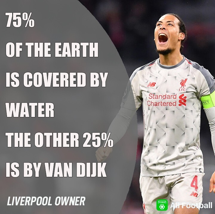 '75% of the earth is covered by water, the other 25% is covered by Van Dijk'