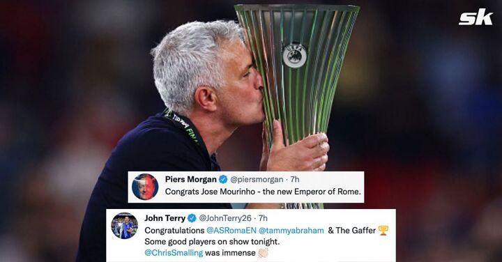 The footballing world, along with a few AS Roma players, took to Twitter to react to their Europa Conference League triumph under Jose Mourinho. Here are a few reactions from renowned personalities from the world of football: