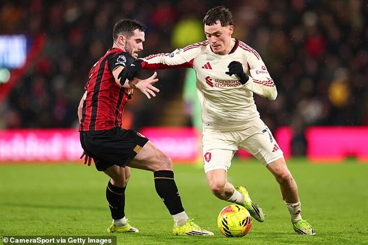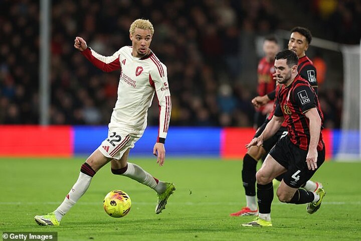 ‘It is safe to say we had a few players who ran out of energy,’ said Slot at Bournemouth, listing three players – Hugo Ekitike, Jeremie Frimpong and Milos Kerkez – as three who were in the ‘risk zone’.