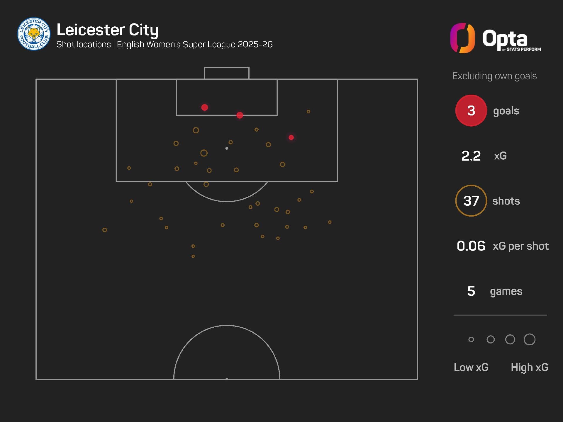 Leicester have recorded the lowest expected goals (xG) tally in the WSL this term (2.2), although their three goals are still more than they had at this stage last season (two).