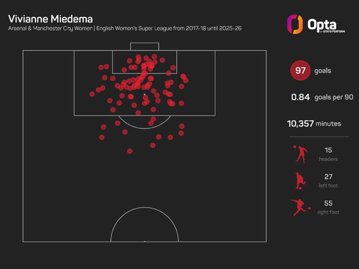 And Vivianne Miedema could also make history here. She is just three goals away from becoming the first player in WSL history to score 100 goals.