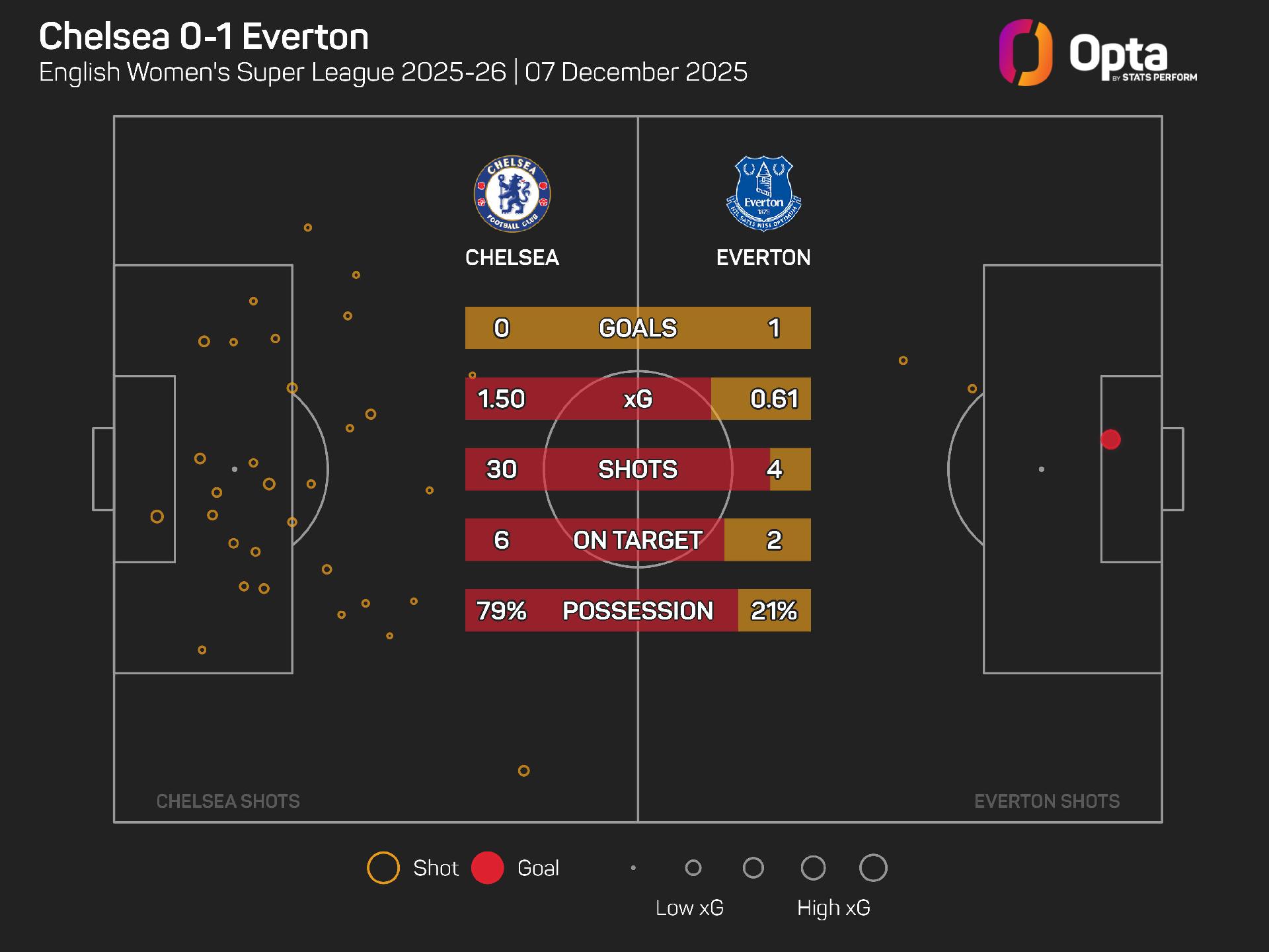 However, Chelsea are unbeaten in each of their last eight WSL away games against Everton (W7 D1), winning each of the last five in a row by an aggregate score of 17-1, since a 3-2 loss in September 2013, and that run is expected to continue here.