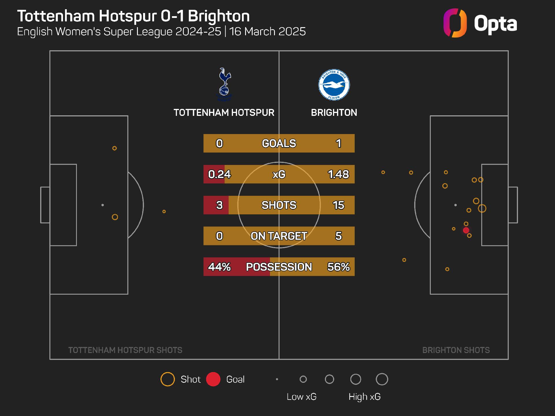 Spurs have lost only one of their last seven league meetings with Brighton (W3 D3), though it was in this exact fixture last season (0-1); their biggest ever WSL win came against the Seagulls in October 2022, winning 8-0 away.