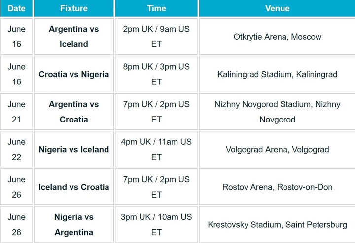 This year's Group D begins with Argentina facing off against Iceland on June 16 at the Otkrytie Arena in Moscow, which sees a side led by Lionel Messi facing a team who will make their first ever World Cup appearance this summer.