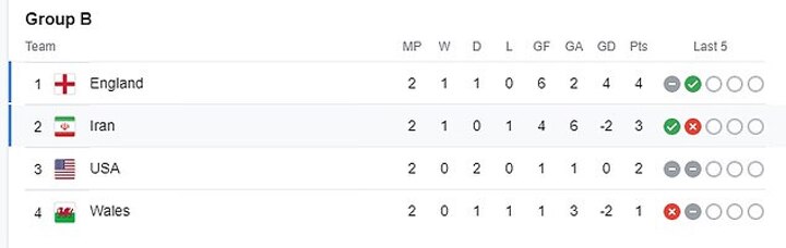 USA, meanwhile, have to win; there is no other option. Iran, though, could draw and still go through, as long as Wales don't beat England. Any win and they are through - and as group leaders, if England don't beat Wales.