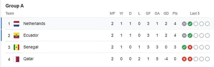 Group A: Holland, Ecuador, Senegal, Qatar