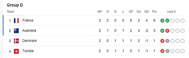 Group D: France, Australia, Denmark, Tunisia