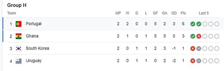 Group H: Portugal, Ghana, South Korea, Uruguay