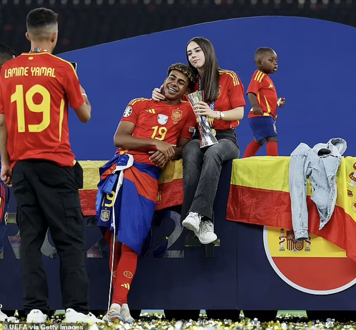 Following Spain's triumph at Euro 2024, where Yamal starred and took home the Young Player of the Tournament award, the pair were inseparable as they celebrated with his team-mates and their friends and family on the Berlin pitch.
