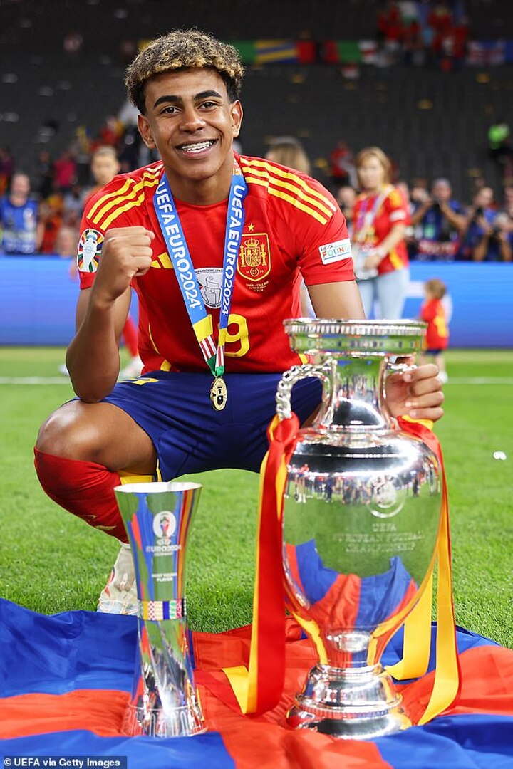 Teenage sensation Yamal lifted the first major international trophy of his career just a day after his 17th birthday following yesterday's 2-1 win against England in Berlin.