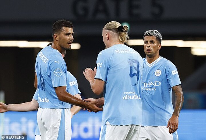 Pep Guardiola changed all 10 outfield players at the break and the tourists took control when play resumed. Within seven minutes of the restart Haaland had hit the net, shooting on the turn to make it 3-2 before Champions League final match-winner Rodri curled in a fourth.
