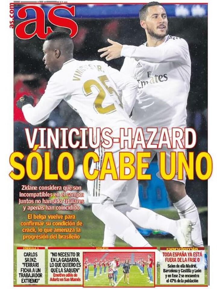 However he has yet to even appear on the same pitch as Vinicius Junior amid Zidane's apparent claims they are incompatible as reported on the front page of Spanish daily AS.
