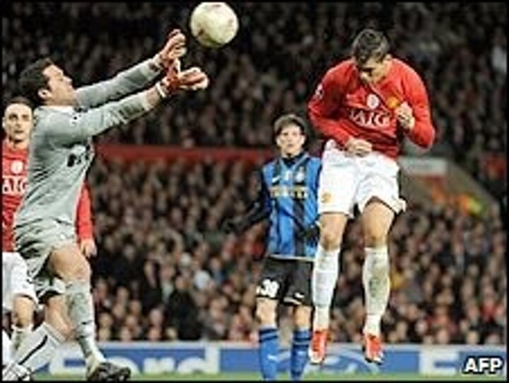 Ronaldo got the better of Ibrahimovic and Inter in the last 16 of the Champions League as, after a goalless draw at San Siro in the first leg, the Portugal great headed United's second goal of the return to secure their progression.