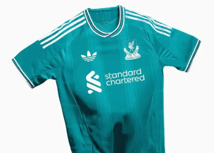 The Liverpool 2025/26 third shirt itself is set to be a mint green, with white, black and mint green stripes on the collar – potentially shaping up to be a rerun of classic green Liverpool x Carlsberg shirts that have gone before, albeit with Standard Chartered expected to be on the front of this modern-day example.