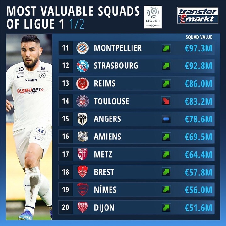 Transfermarkt has updated the value of the players and revealed the clubs' value in Ligue 1.