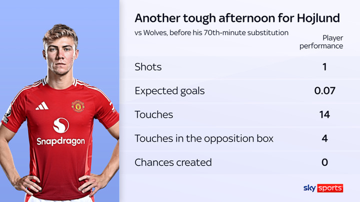 The Danish striker, who laboured without success against Wolves, has started 31 of Man Utd's games this season as their main striker, and has six goals to show for it - and only one this calendar year.