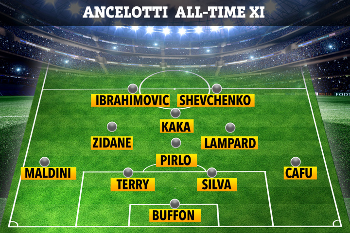 CARLO ANCELOTTI once named his best XI of players he has managed during his long career - and included Chelsea flop Andriy Shevchenko.