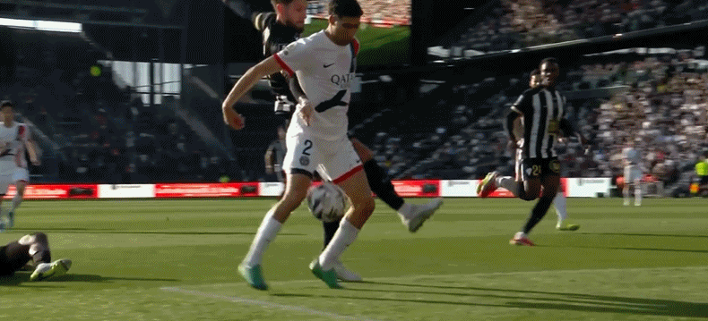 Hakimi then struck the post from a free-kick at the other end, before Beraldo teed up Mayulu for the visitors' second goal on 39 minutes.