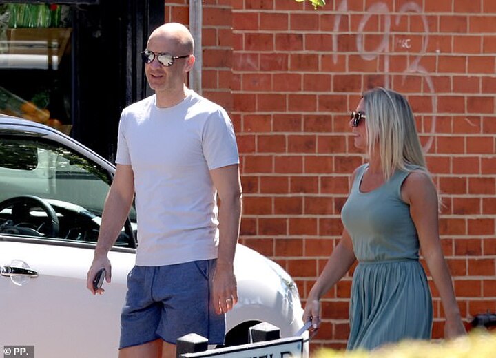 But he raised a smile with his wife, who was wearing a green dress, as they enjoyed the afternoon sunshine.