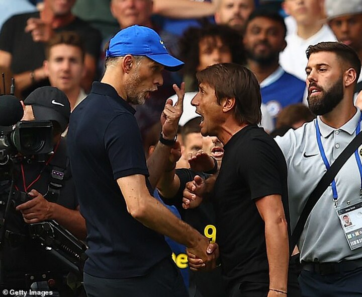 Conte and Tuchel clashed several times during the 2-2 draw between Chelsea and Tottenham on Sunday, with the biggest coming in a tense head-to-head at full-time which saw both managers sent off.