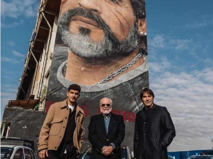 Antonio Conte, Giovanni Di Lorenzo dan Aurelio De Laurentiis, semuanya hadir di kaki mural Maradona di Naples, untuk meletakkan karangan bunga dan memberi penghormatan kepada salah satu pemain sepak bola terhebat sepanjang masa di dunia.