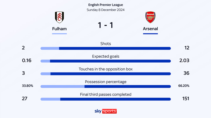 It was particularly tough to take given his side's dominance. "We deserved to win from the beginning to the end," Arteta said. Fulham scored from one of only two shots. Their total of three touches in the opposition box was the lowest in the Premier League all season.