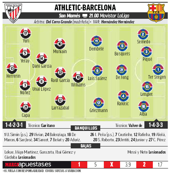 Garitano, on the other hand, has his own issues as Inigo Martinez, Ibai, Cordoba, Guruzeta and Lekue are all out injured. Youngster Oihan Sancet is a surprise on the squad list.